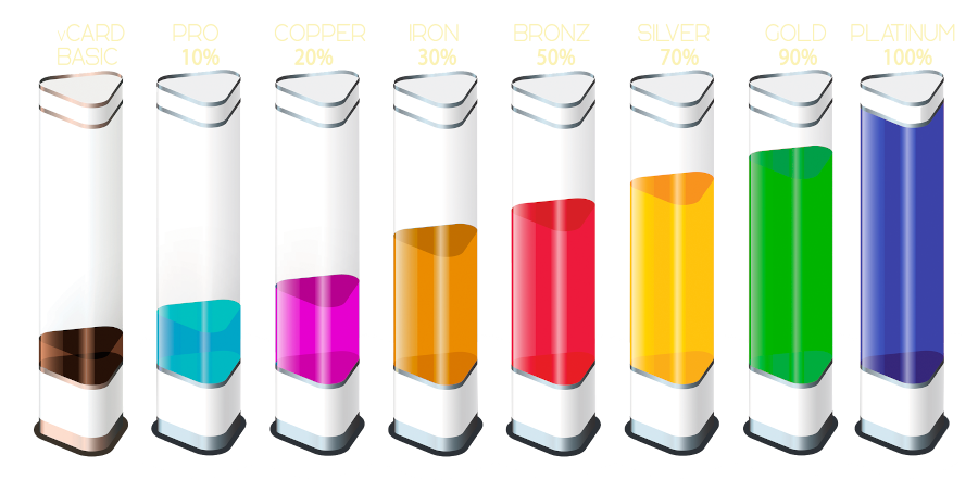 If the user "manufactures" (inserts content, more data and information) in his vCard, he makes it grow in CLASS by increasing the revenue power it can give him when hosting Events, Products and Advertising created by third-party users.