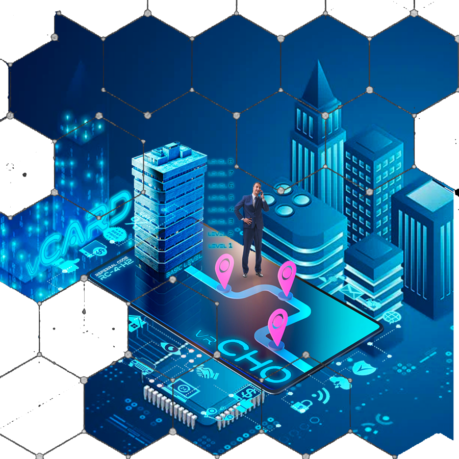 CHO.earth has created a FIFTH DIMENSION which is a digital layer of the physical world composed of vCards, also visible with Augmented Reality through geolocation in the real world.