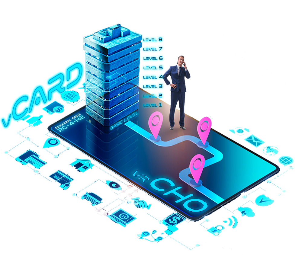Over time vCards can be implemented and also level up, more data contents and informations are entered by the owner, more the CHO Digital Property Value increases, possibly even doubling the Base Value. This increase in Value offers an increase in the Capital of the CHO Digital Property that the User holds.